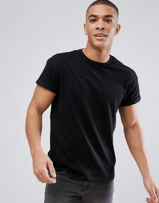New Look Roll Sleeve T Shirt In Black Bolivia Embajadashops